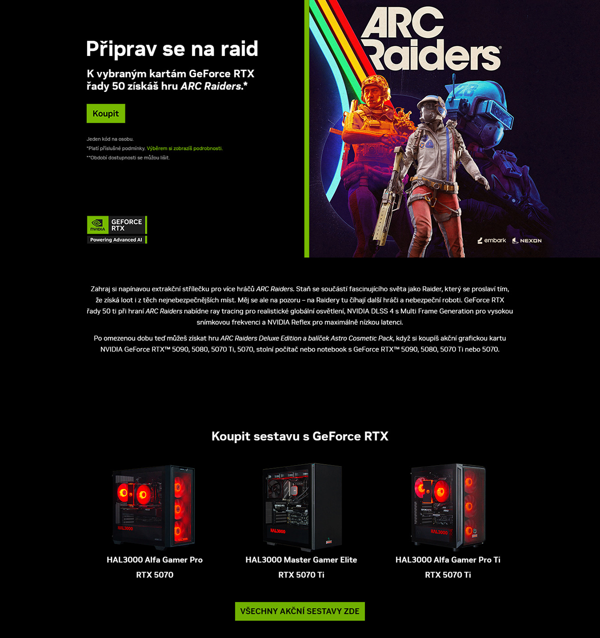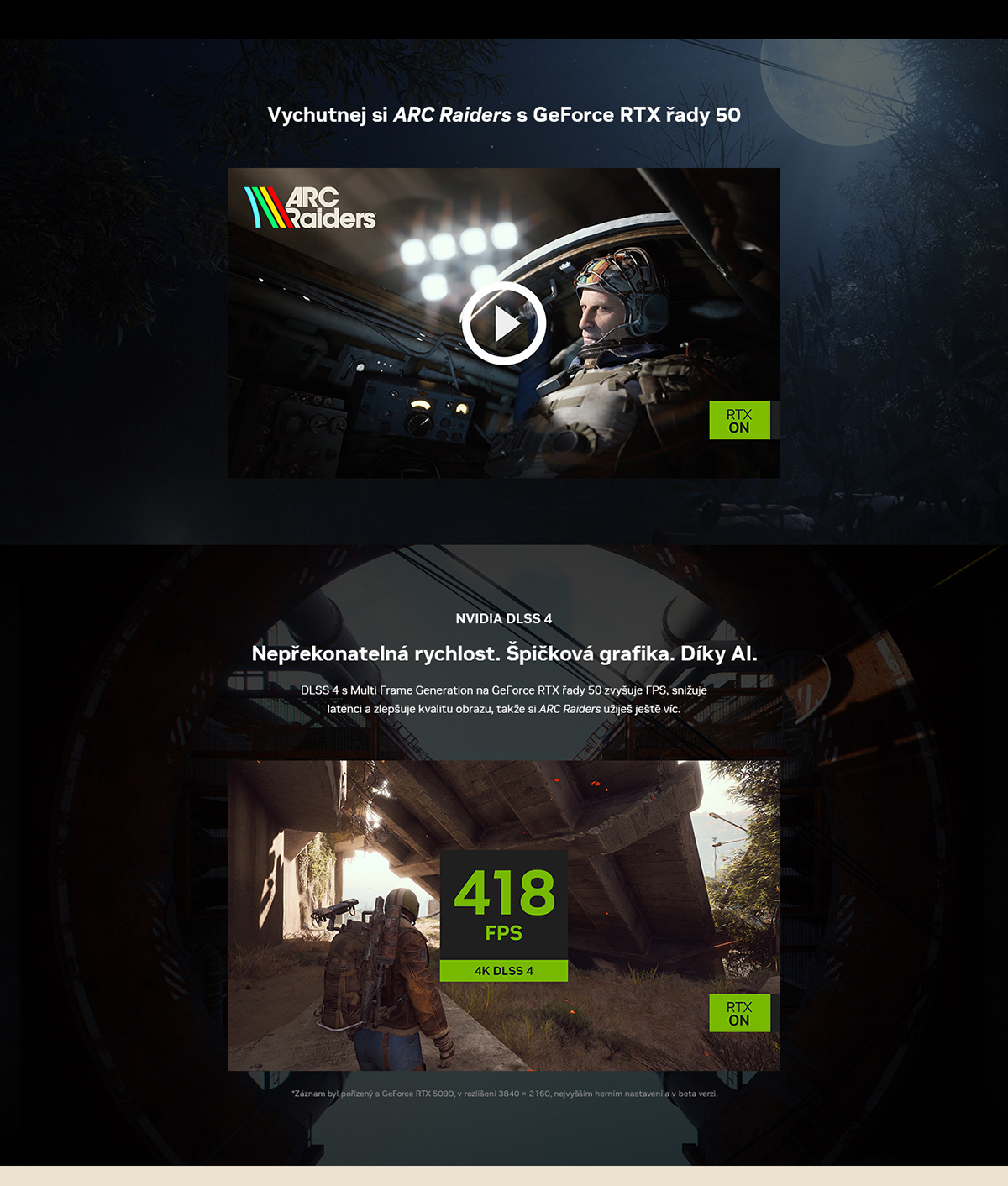 Získej hru ARC Raiders k vybraným produktům GeForce RTX řady 50.